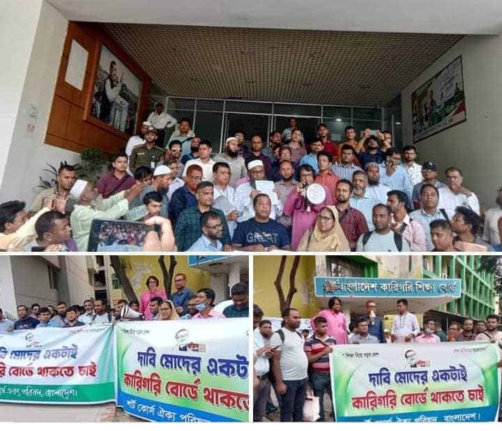 উক্ত চিঠির আলোকে সারাদেশ থেকে আসা শত শত প্রতিষ্ঠান পরিচালক উক্ত নোটিশের প্রতিবাদ বাংলাদেশ কারিগরি শিক্ষা বোর্ড প্রাঙ্গনে জড়ো হয়। বাংলাদেশ কারিগরি শিক্ষা বোর্ড অনুমোদিত প্রতিষ্ঠান পরিচালকদের পাঁচটি সংগঠনের সম্বনয়ে গঠিত শর্টকোর্স ঐক্য পরিষদ নেতৃবৃন্দ বক্তব্য রাখেন। শর্ট কোর্স ঐক্য পরিষদের প্রধান সমন্বয়ক নাসির উদ্দিন ভুইয়া, মোদাচ্ছের হোসেন সিরাজী, মোস্তাফিজুর রহমান, শামিমআরা বেগম, আফসার হোসেন, মোঃ আব্দুল জব্বার, নিত্যনন্দ সরকার, শওকত আলী, ইঞ্জিনিয়ার জোবাইর আহাম্মদ রানা, শহিদুল্লাহ সাদা, উজ্জ্বল দত্ত, মোঃ ফিরুজ, আব্দুর রহমান পরান,সদস্যদের নামের সাথে আরো দুইটা নাম দিয়ে দিয়েনএডঃ হুমায়ুন কবীর, ফয়সাল হাসান মিরাজ, আক্তার ভুইয়াসহ অনেক প্রতিষ্ঠান প্রধানগণ।