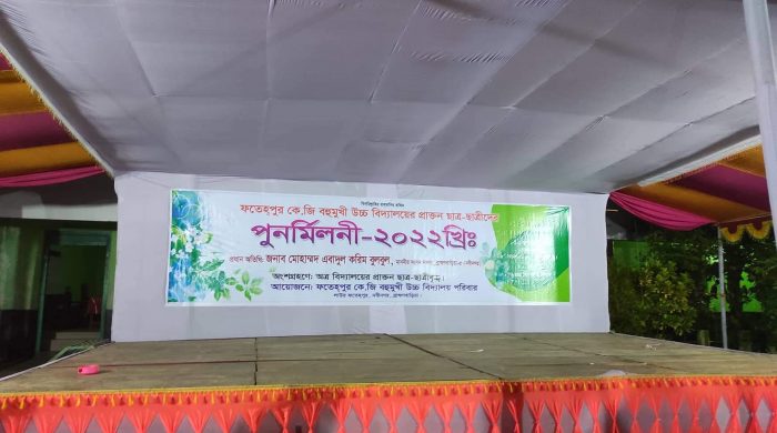 ফতেহপুর কে.জি উচ্চ বিদ্যালয়ের প্রাক্তন ছাত্র ছাত্রীদের পুনর্মিলনী অনুষ্ঠান আজ নানান আয়োজনের মধ্য দিয়ে ঐতিহ্যবাহী ফতেহপুর কমলাকান্ত গুরুচরণ বহুমুখী উচ্চ বিদ্যালয়ের প্রাক্তন ছাত্র ছাত্রীদের পূনমির্লনী অনুষ্ঠান আজ সকাল ১০ টায়